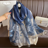Khăn Choàng Tơ Tằm Gân Thêu Hoa Cao Cấp (TTG904)